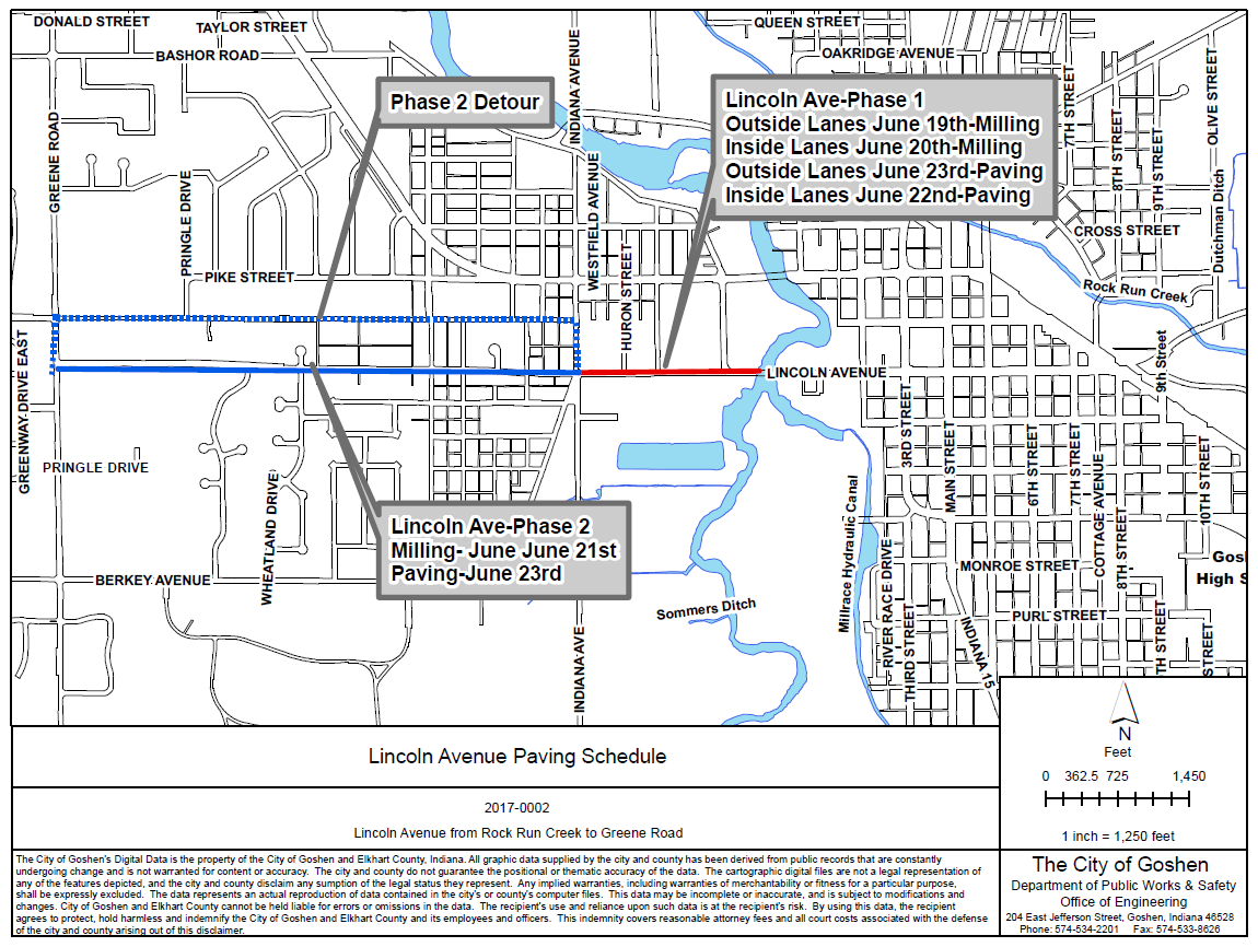 Monday, June 25: Paving Lincoln Avenue from Indiana Avenue to Greene Road. Lincoln Avenue will be closed. The detour will be Indiana Avenue to Clinton Street to Greene Road