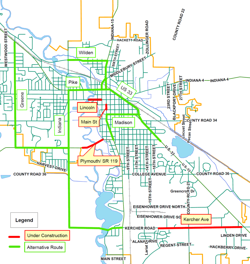“At the same time, these contractors are balancing schedules of projects in multiple communities. The City also considers the schedules of any of the utility/service companies, which may have to approve or move their infrastructure. Finally, we do our best to work around large events like First Fridays and the Elkhart County Fair.
