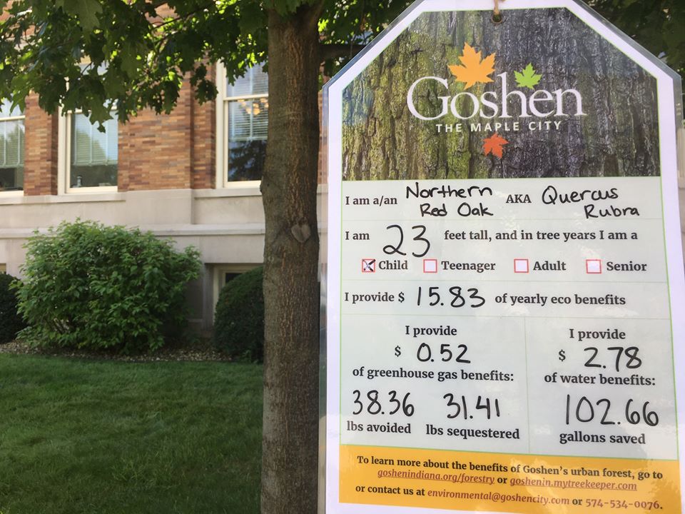 They document the ecological benefits in dollar values which each tree provides to the residents of Goshen. They help to explain the need for the City’s urban tree Canopy Goal of 45 percent tree coverage by 2045.