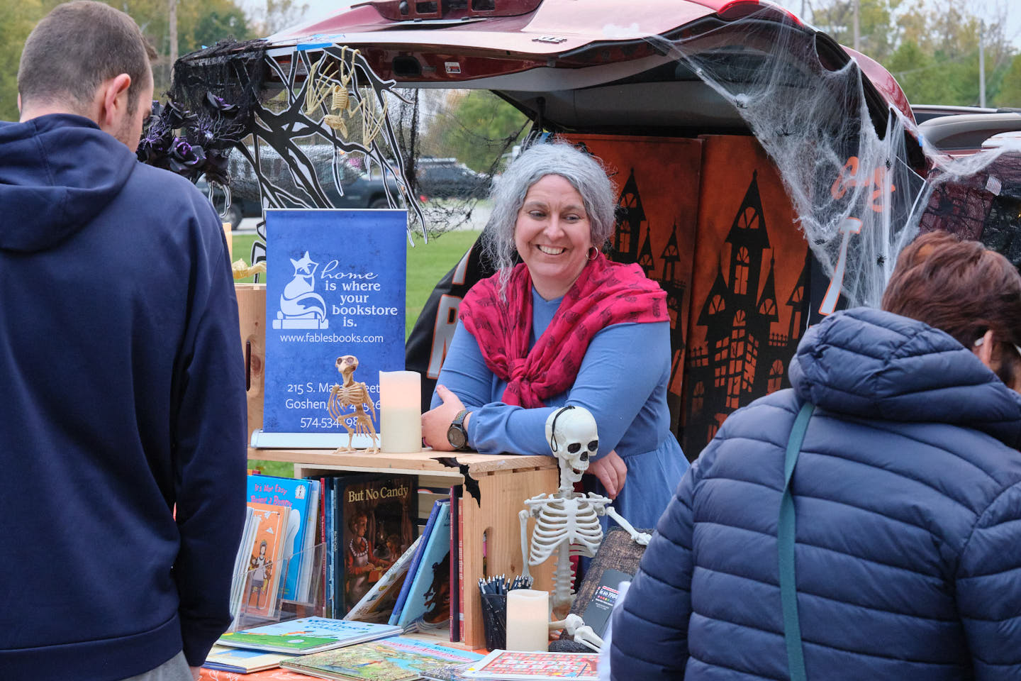 GOSHEN, Ind. — Cars lined the loop at Shanklin Park, their trunks transformed into haunted cabins, carnival booths, and candy stops. Kids dressed as dinosaurs, deranged clowns, and superheroes compared candy hauls while volunteers passed out treats as an October chill finally began haunting the autumn air.