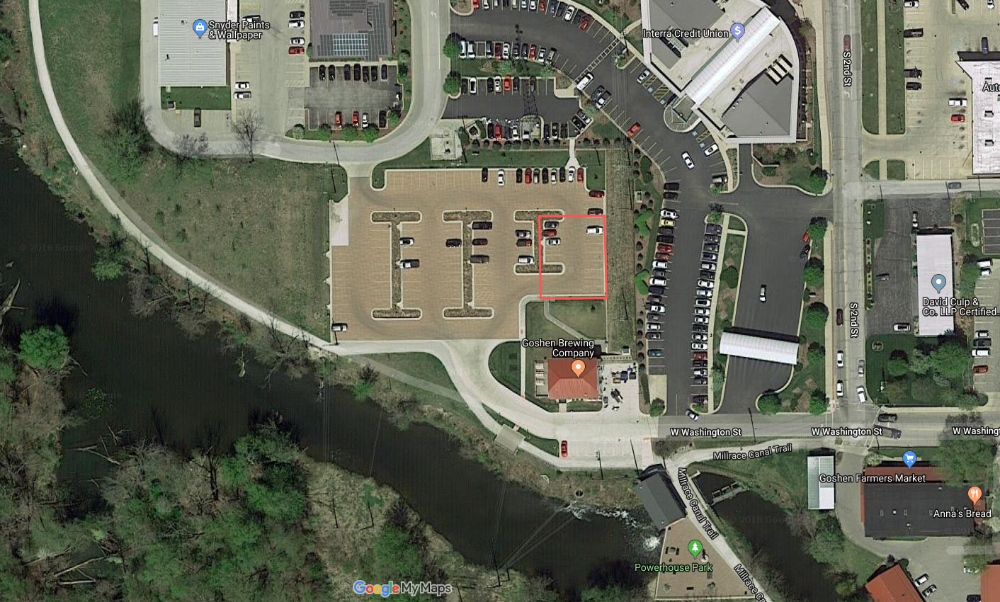 From Friday evening, Sept. 28, through early Saturday evening, Sept. 29, a portion of the City Parking Lot north to Goshen Brewing Company will be closed to the public. Only the portion within the red square will be closed off to the public, to allow a private event.